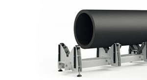 – Verstellbare, V-förmige Rohrauflage mit Rollen